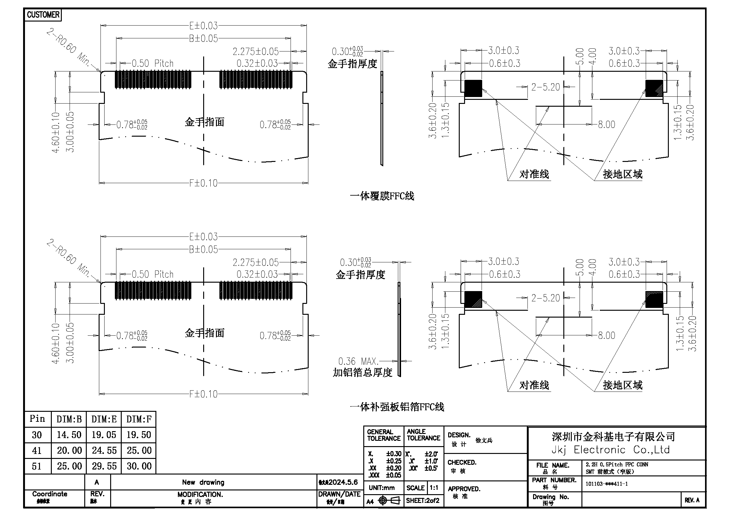 FPC0.5mm窄板 H2.2 翻盖 51P 镀金连接器